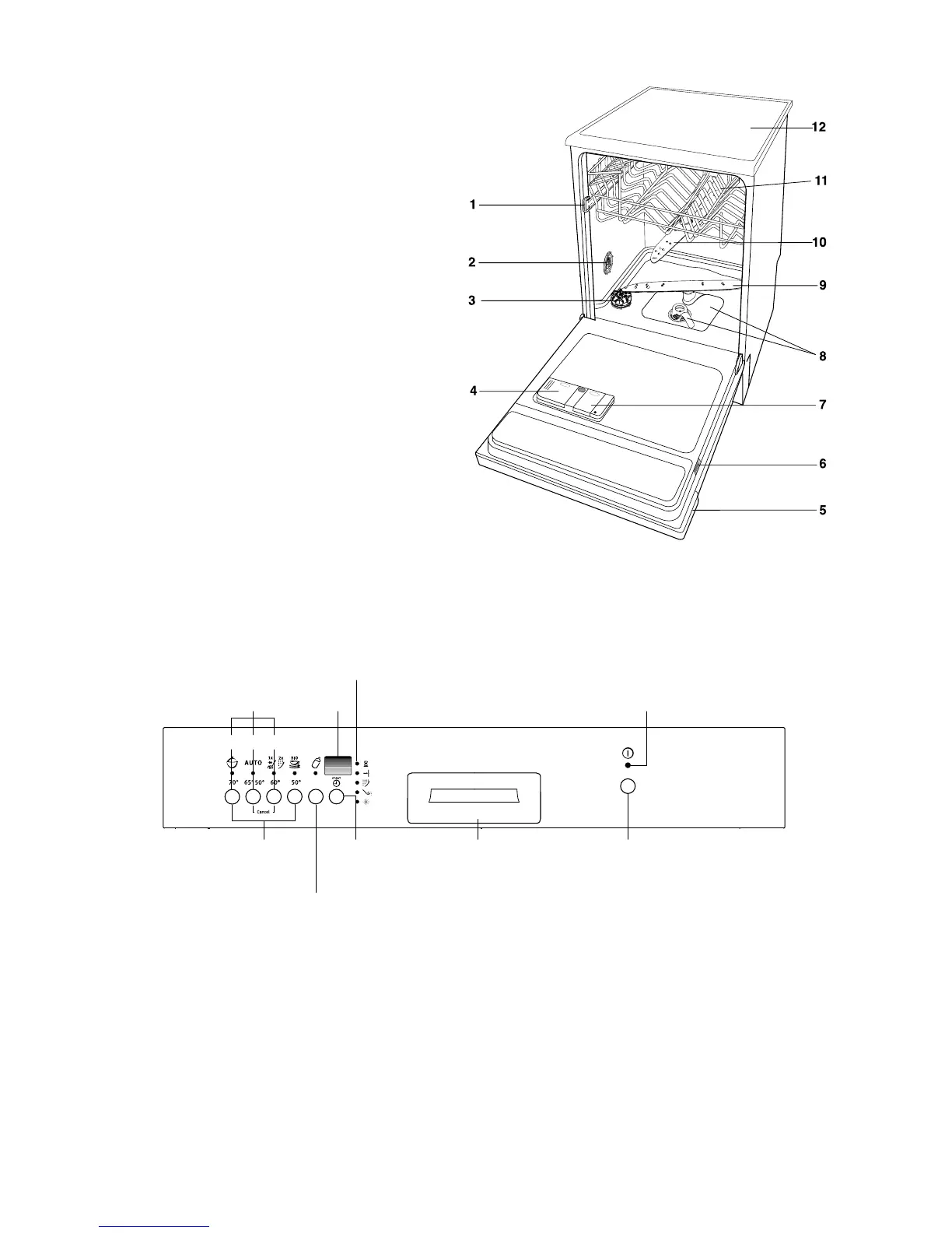 Function push buttons: in addition to the dishwashing