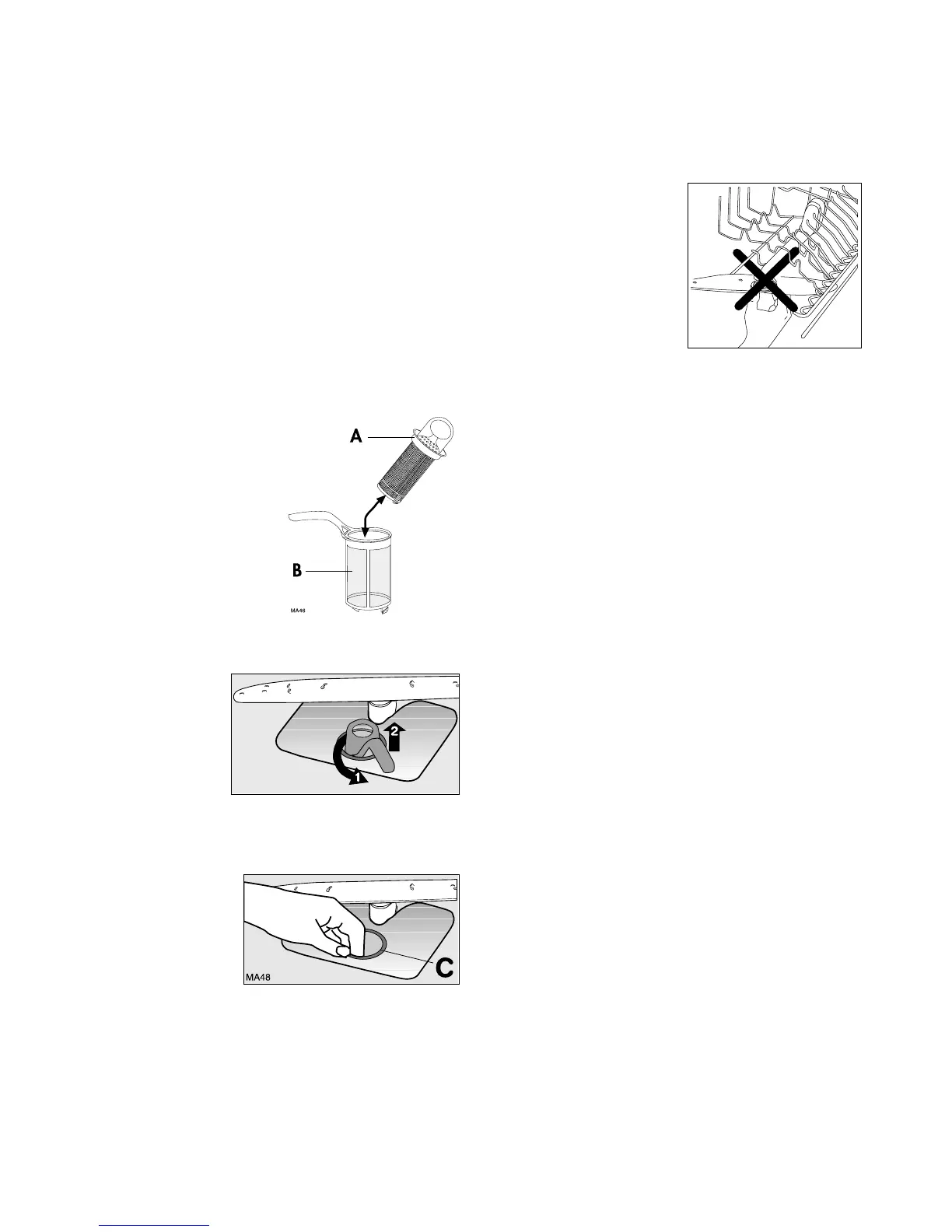 6. Remove the flat filter (C) from the base of the washing