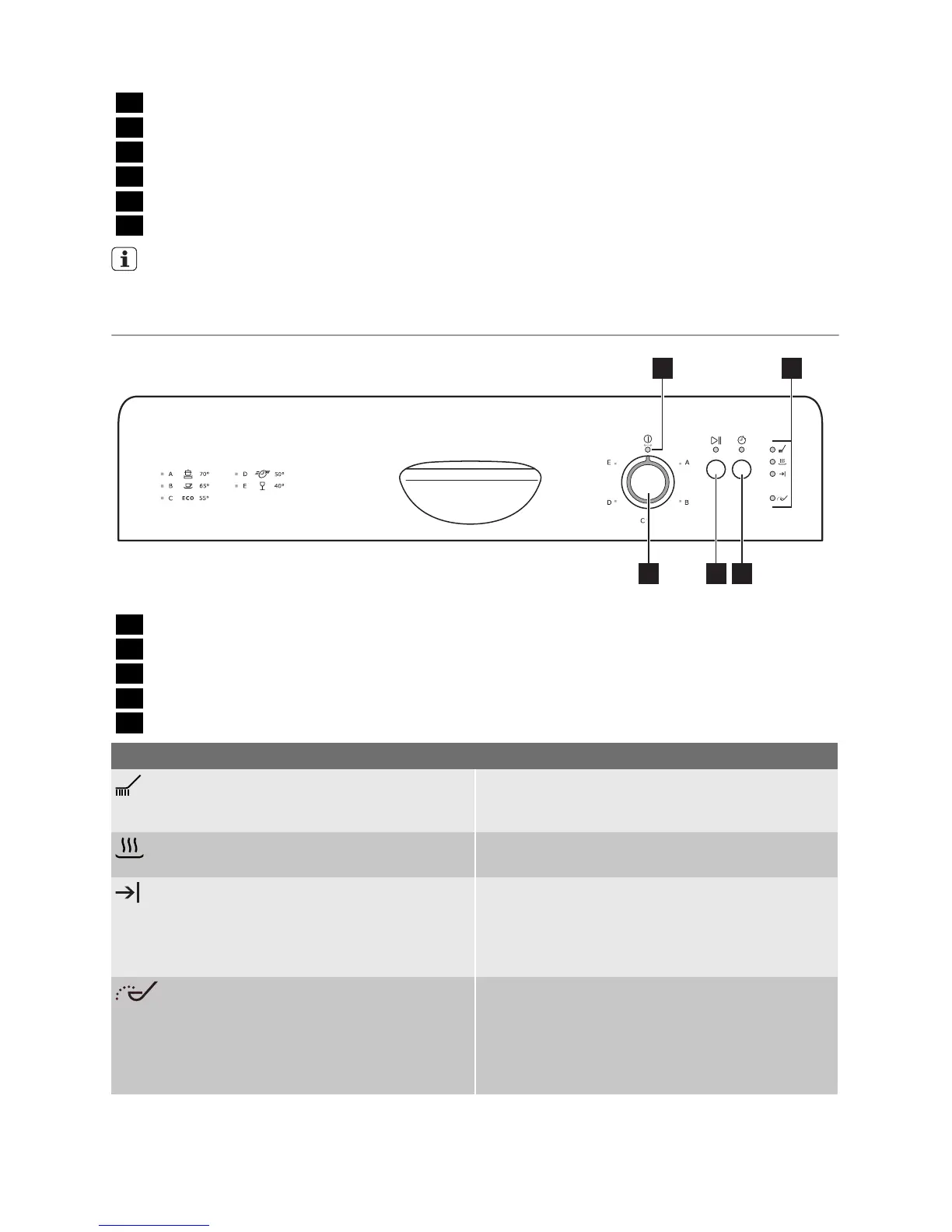 1) O indicador luminoso está desligado enquanto um programa de lavagem estiver em curso.