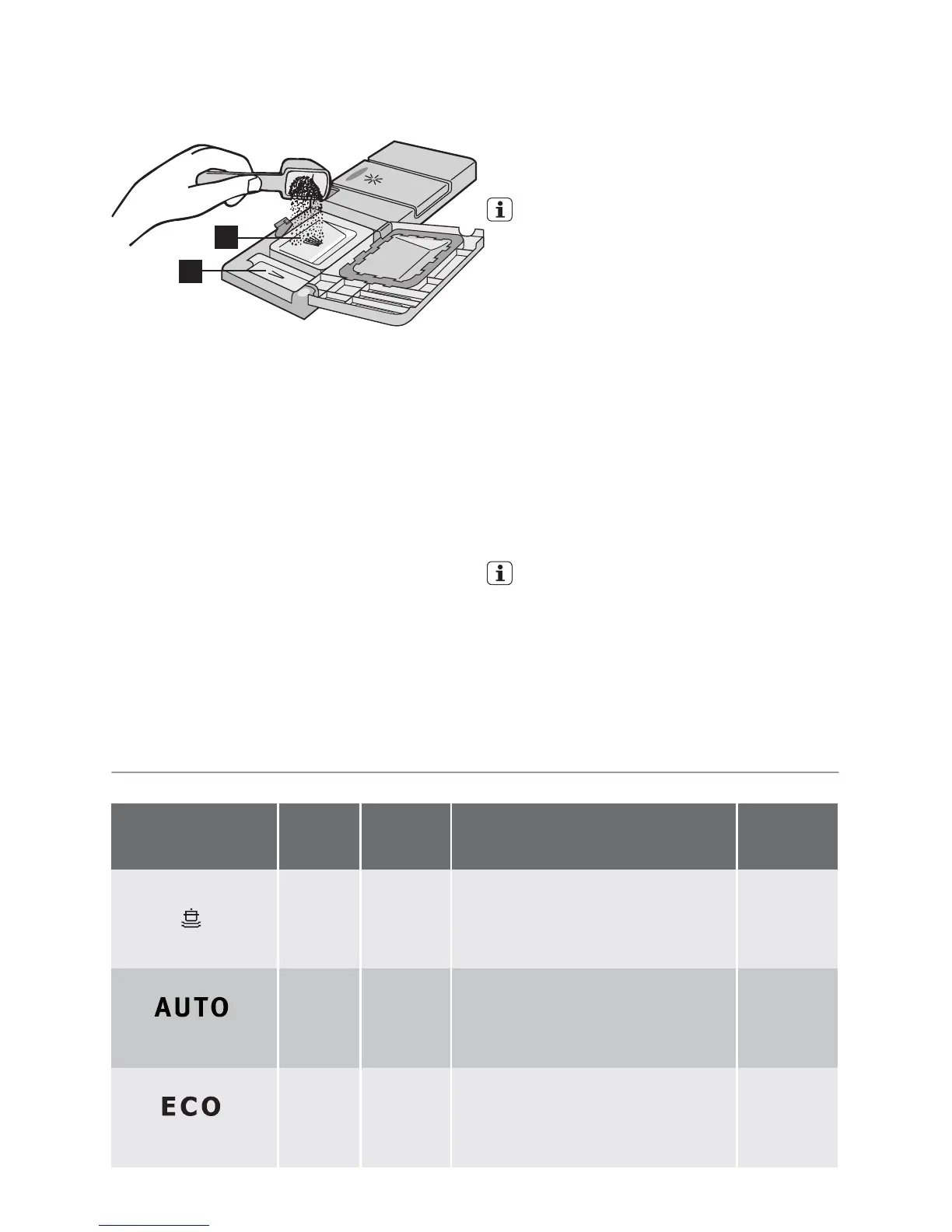 2. Fill the detergent dispenser (A) with de-
