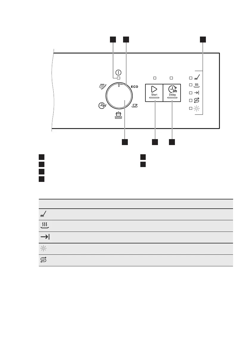 Rinse aid indicator. It is always off while the programme operates.
