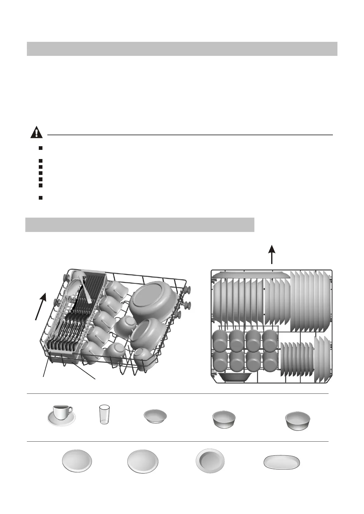 Place objects in the dishwasher in following way: