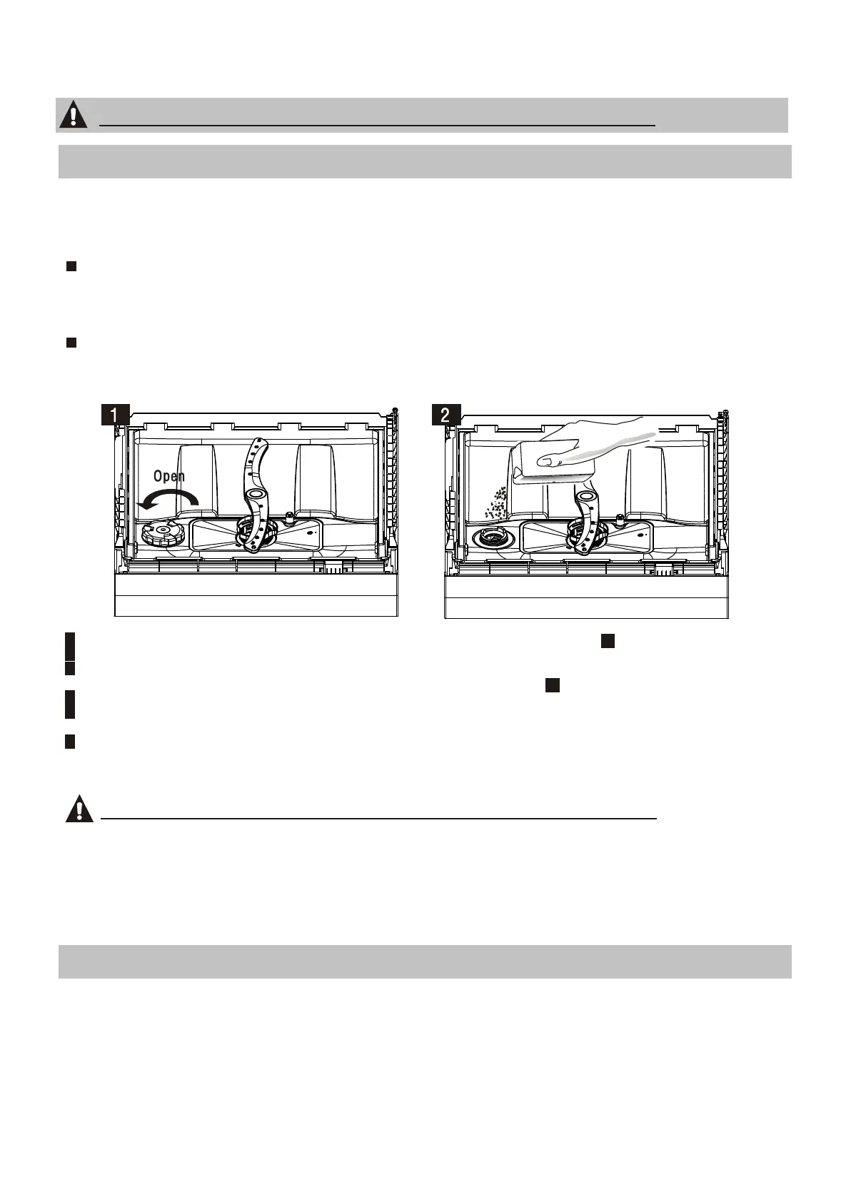 2. If there are spills of the salt, a soak or a rapid program should be run to remove the excess salt.