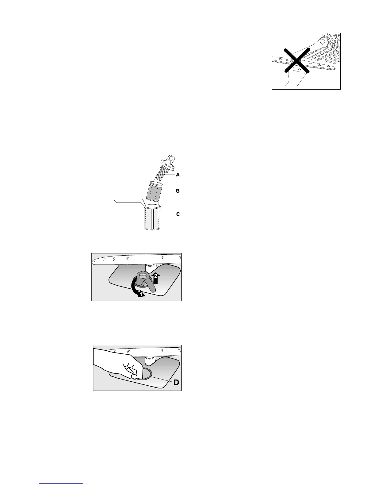 6. Remove the flat filter (D) from the base of the washing