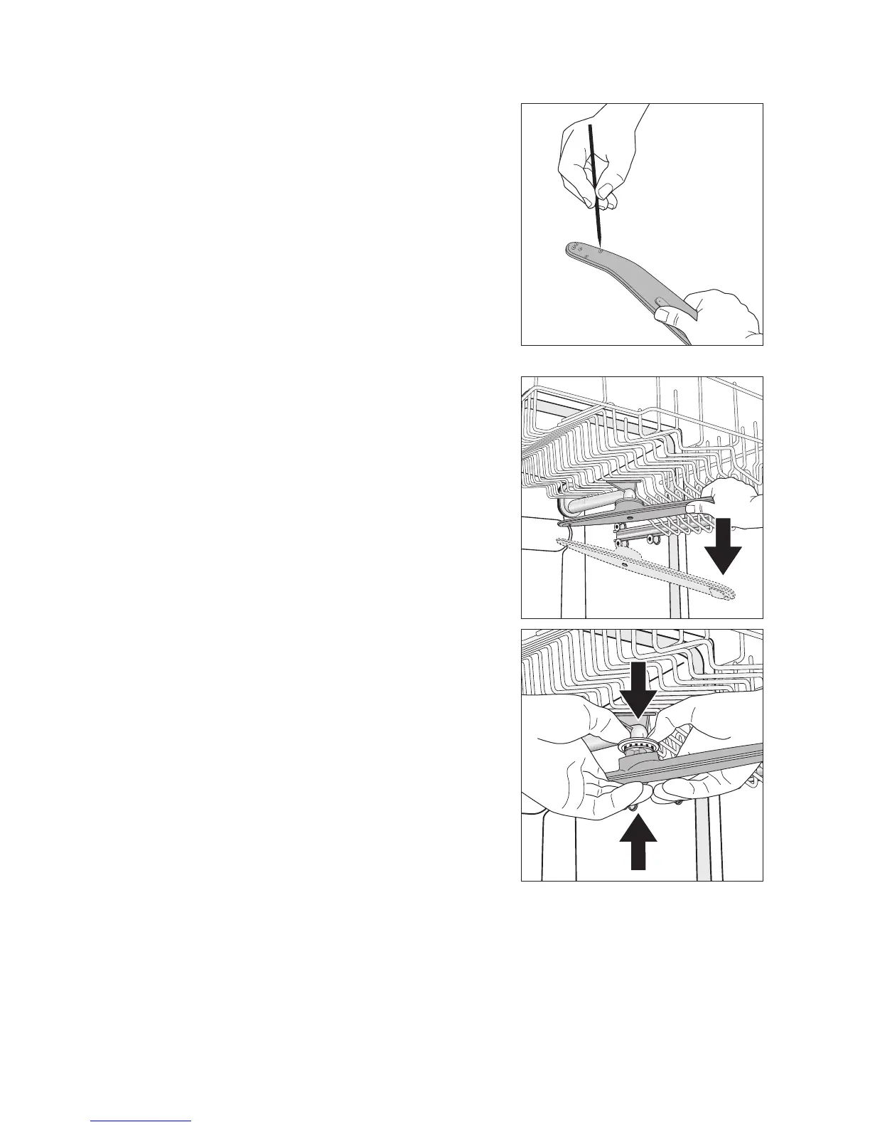 1. To remove upper basket spray arm, tilt it down