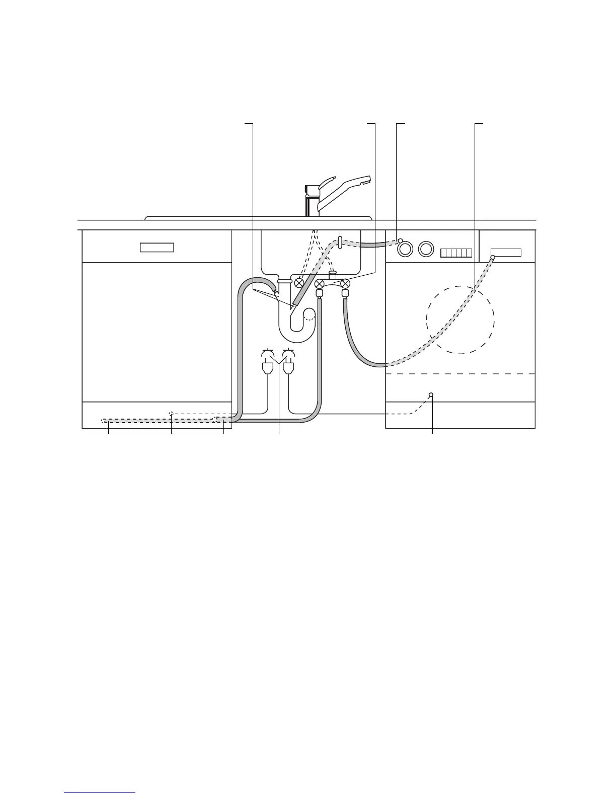 The water inlet hose, drain hose and the mains cable