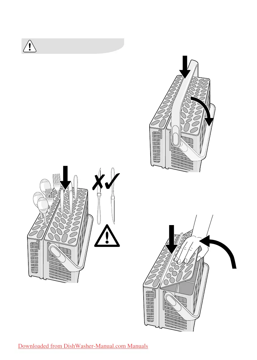 lower spray arm, load the cutlery with