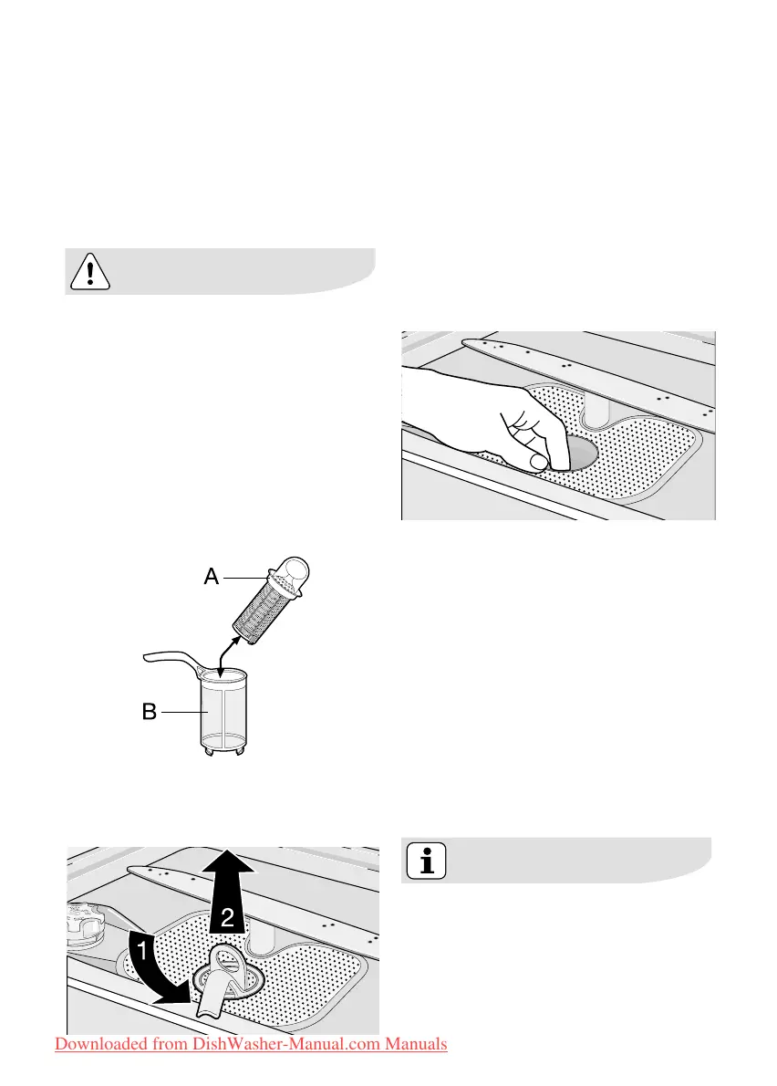 4. Take hold of the coarse filter (A)