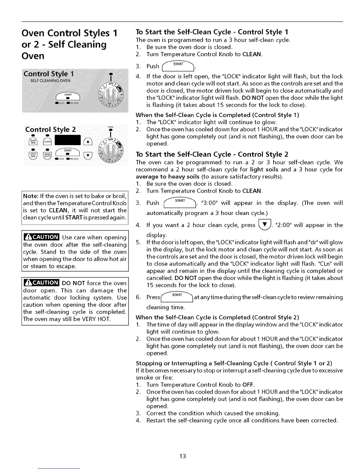 Stopping or Interrupting a Self-Cleaning Cycle ( Control Style 1 or 2)