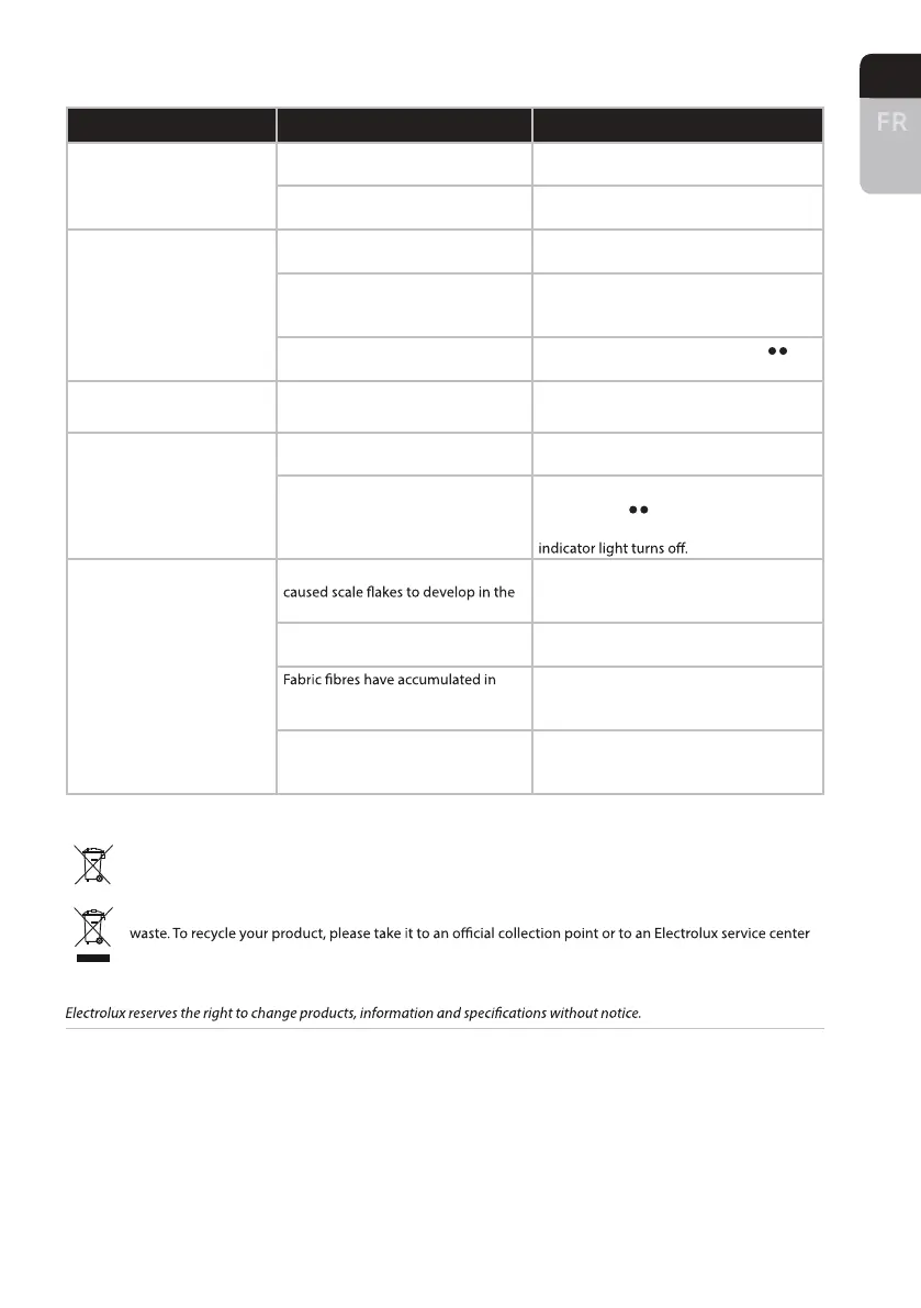 Not enough water in tank. Fill the water tank (see “Getting started”,