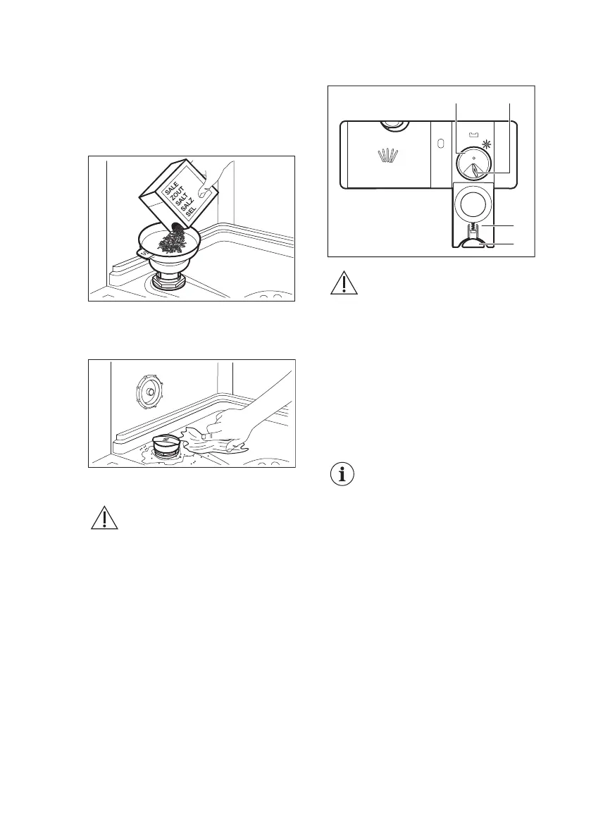 • If the salt indicator is on, fill the