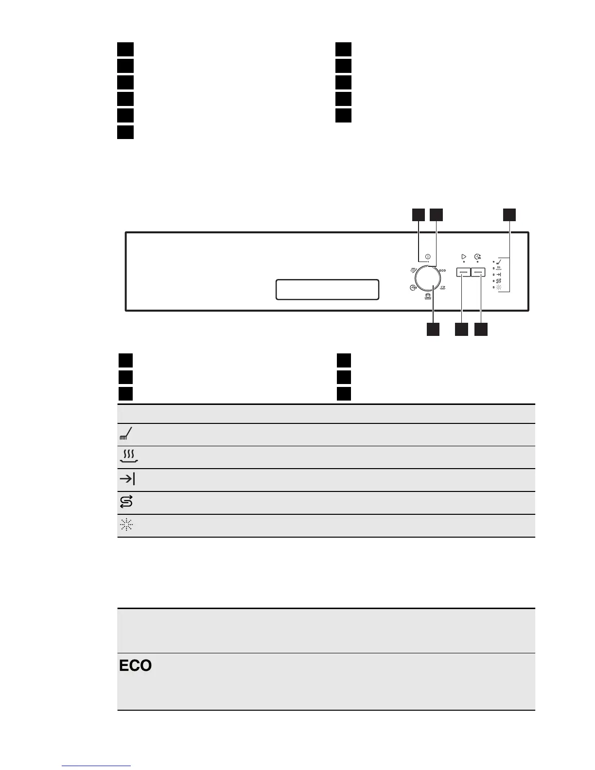 Kontrolka mycí fáze. Rozsvítí se, když probíhá mycí nebo oplachovací fáze.