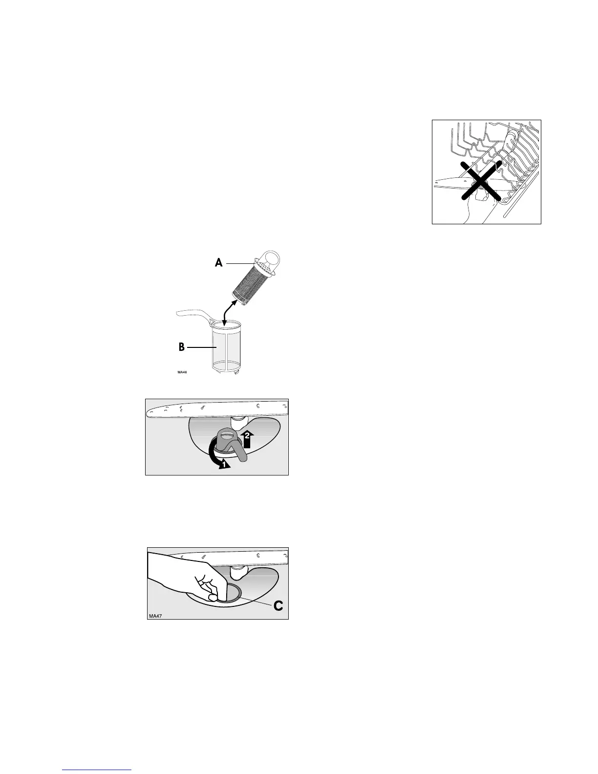 6. Remove the flat filter (C) from the base of the washing