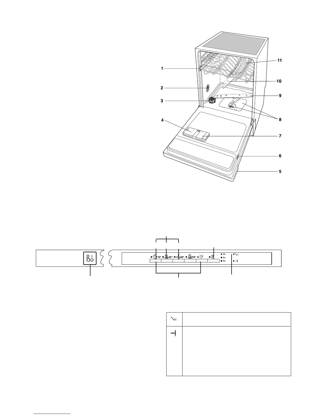 Function push buttons: in addition to the dishwashing