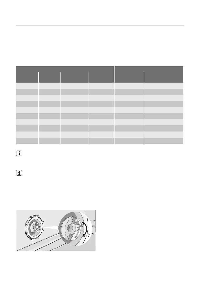 wody w położenie 1 lub 2 (patrz tabela).