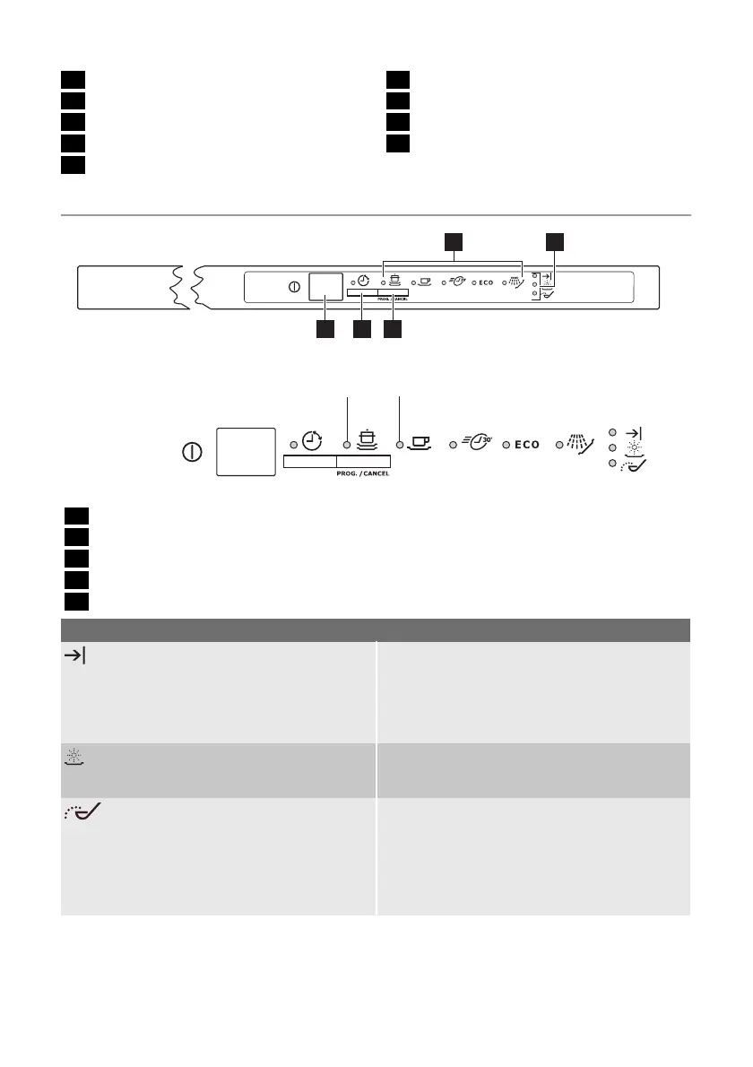 1) Lorsque les réservoirs à sel et/ou à liquide de rinçage sont vides, les voyants correspondants ne s'allument pas