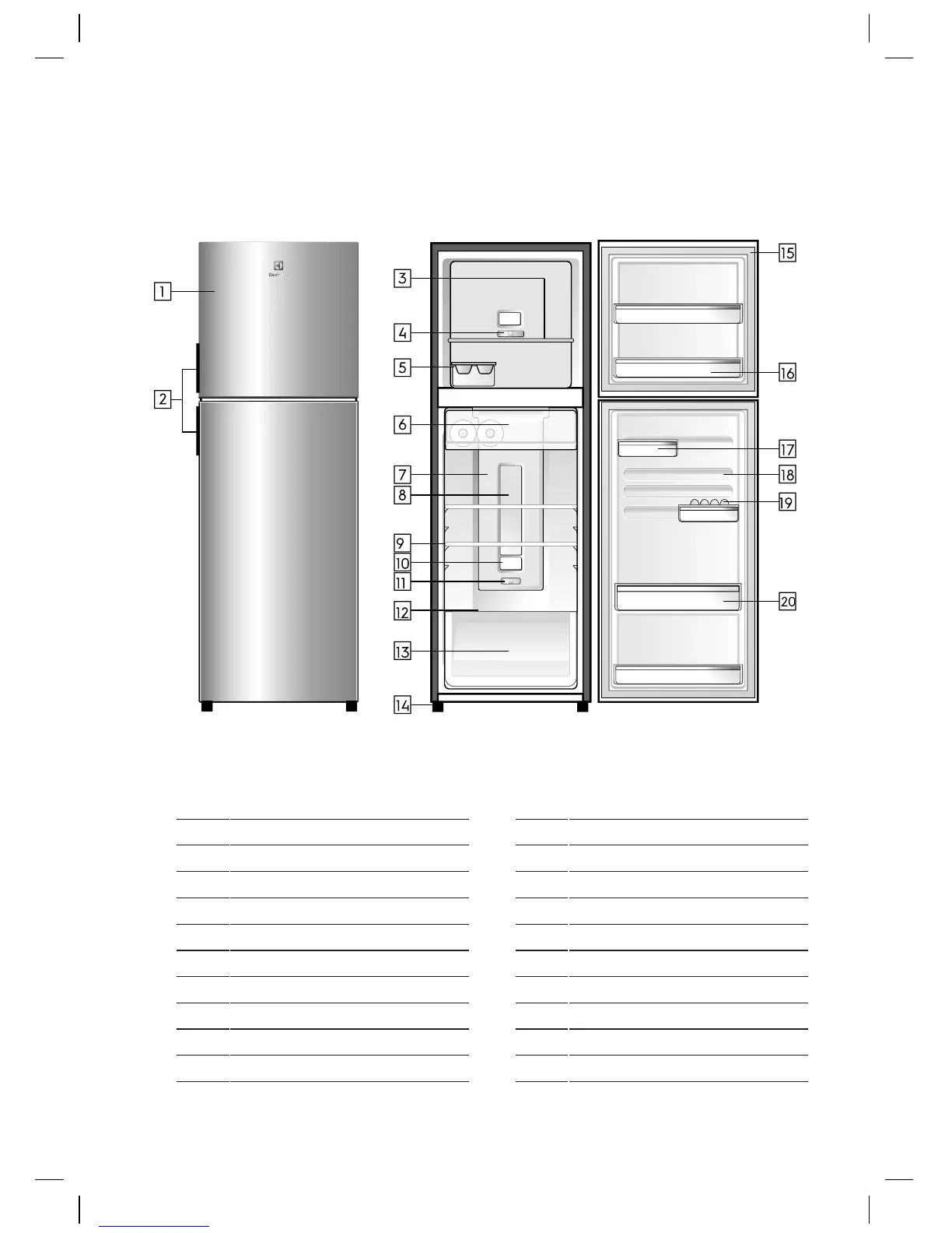 Electrolux ETB2302H - ETB2802 H Top Freezer Features; Overview of Refrigerator Components