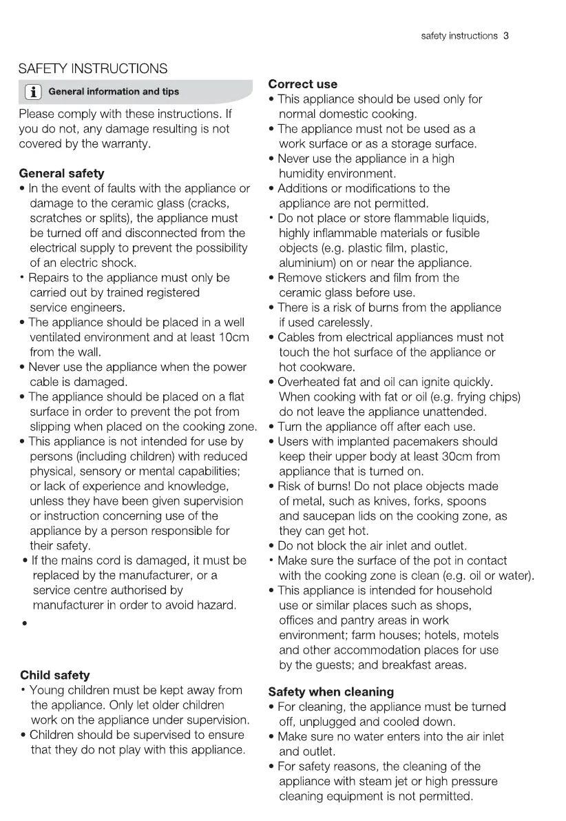 Electrolux ETD42SKA - Safety Instructions; General Safety Precautions; Child Safety Measures; Correct Usage Guidelines