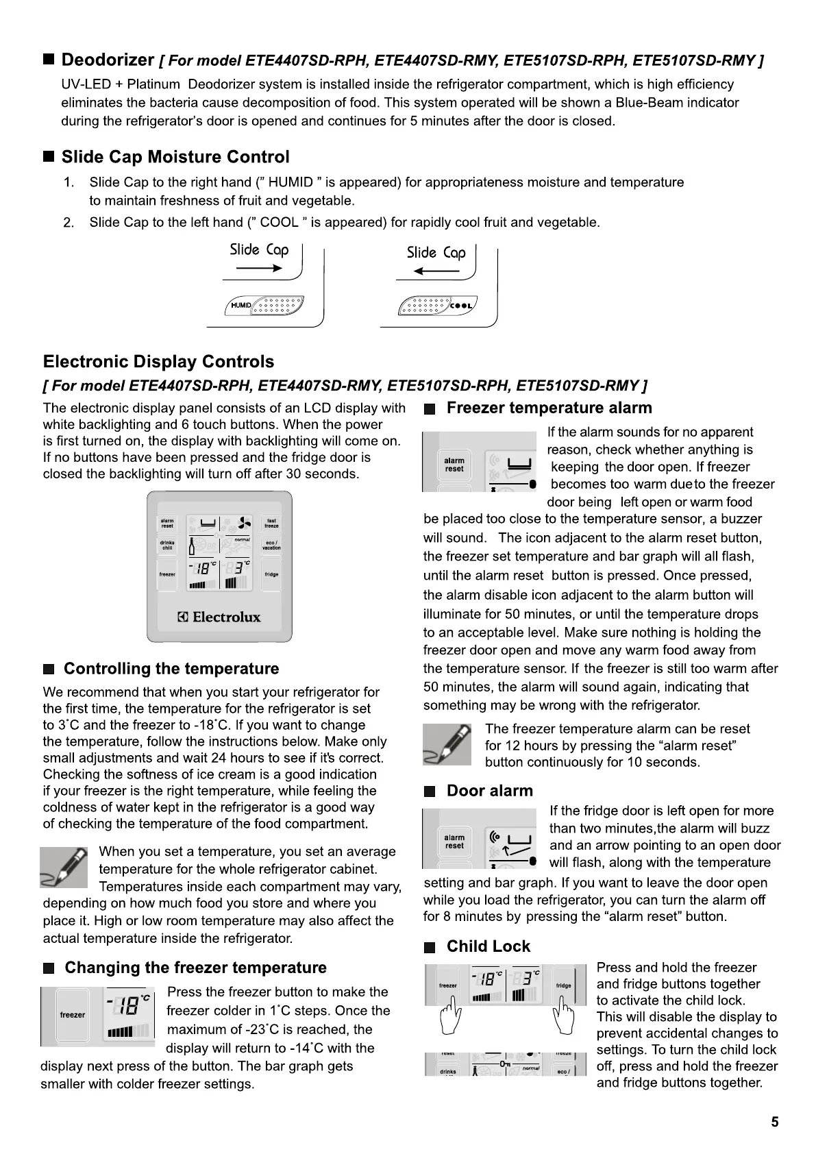 Electrolux ETE5107SD-RMY - Advanced Features and Controls; Electronic Display Controls; Temperature Management; Alarm and Safety Features