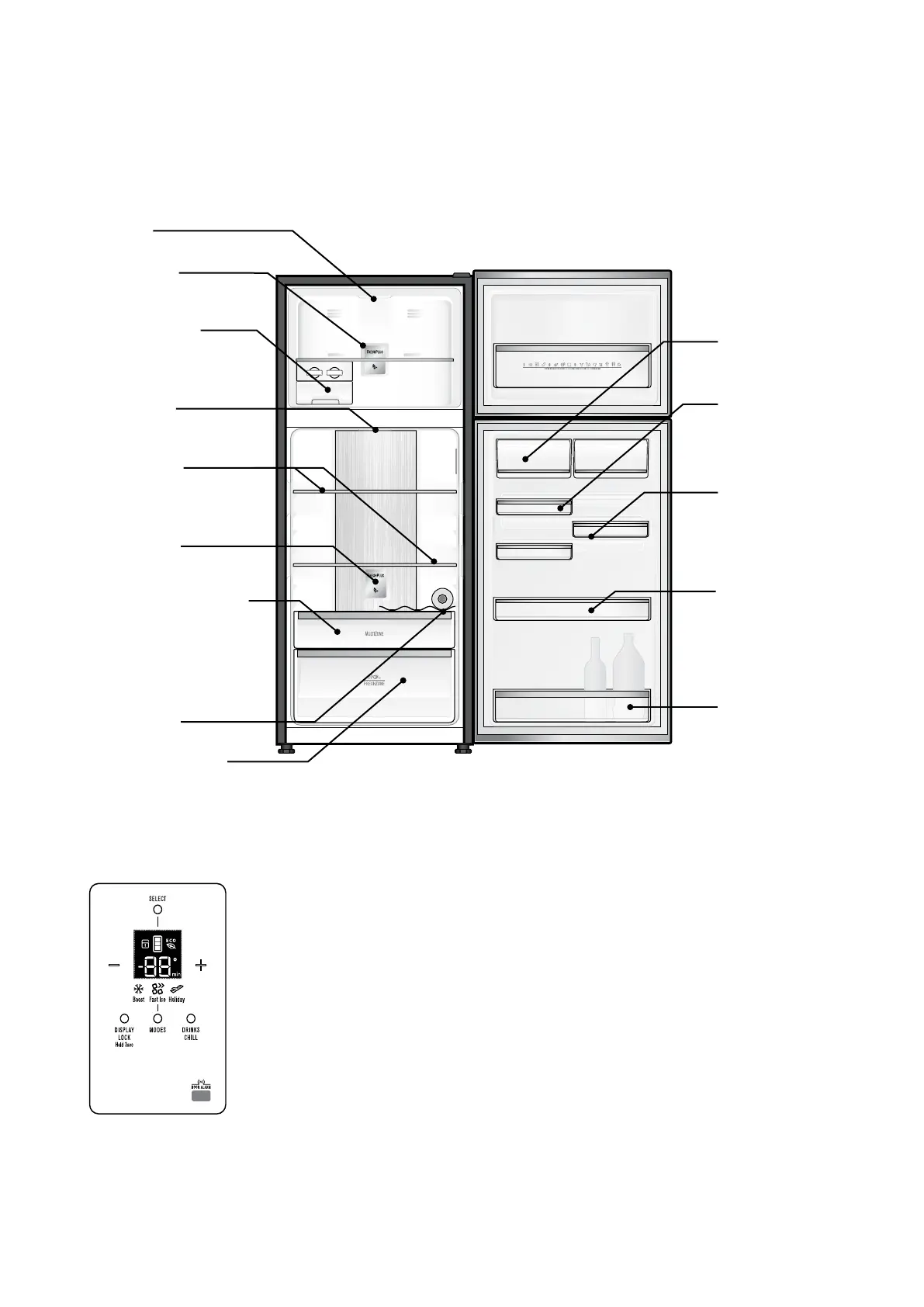 refrigerator and freezer compartments as well as setting