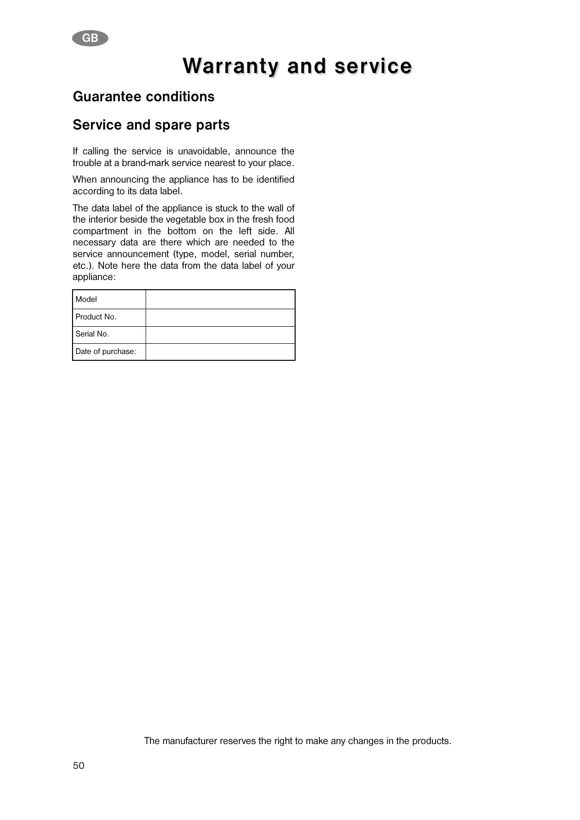 Service and spare parts