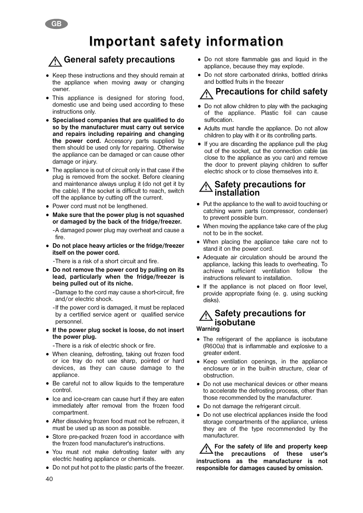 lead, particularly when the fridge/freezer is