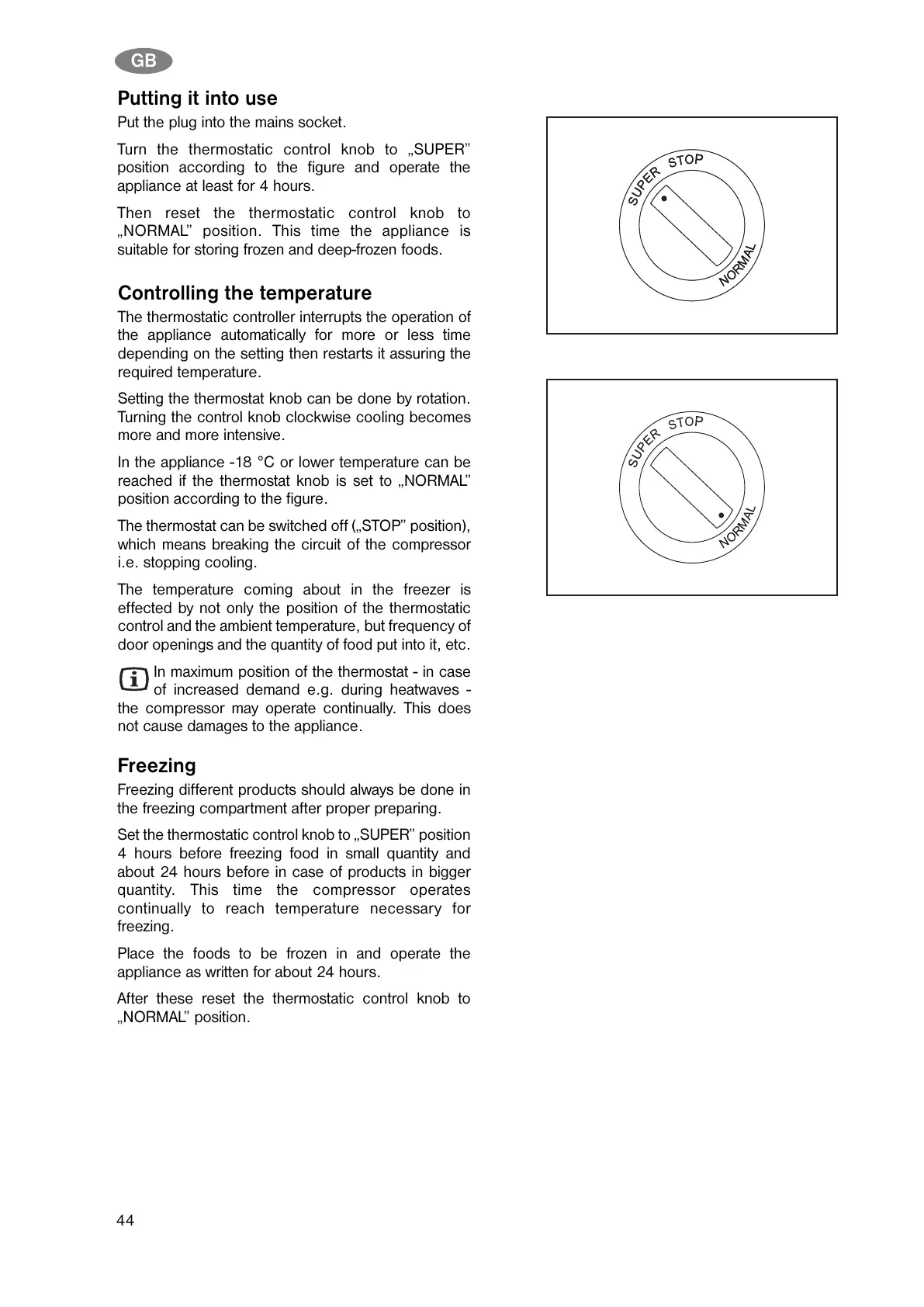 Turn the thermostatic control knob to SUPER