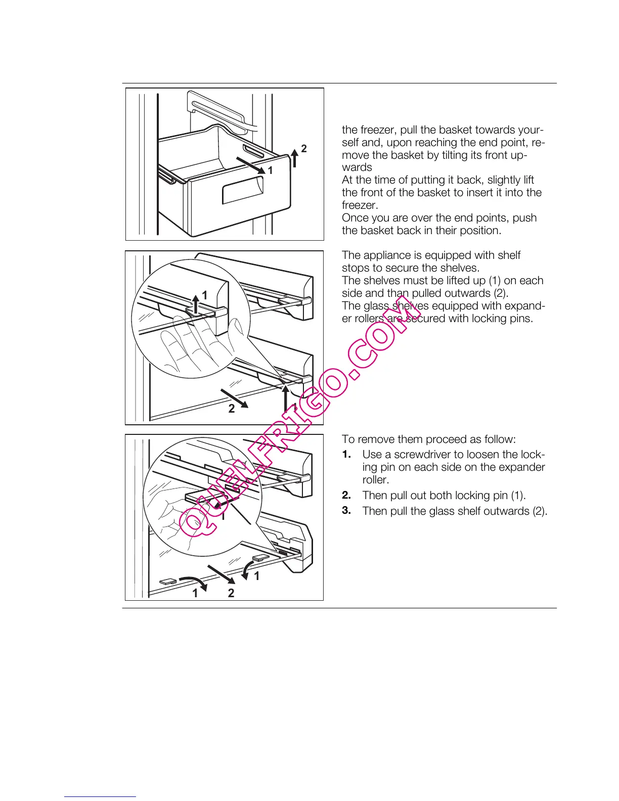 3.6 Removal of freezing baskets and glass shelves from the freezer