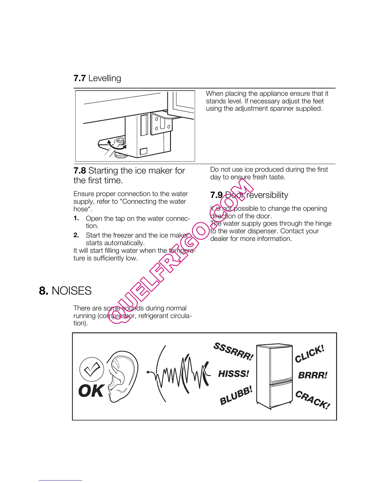 7.8 Starting the ice maker for