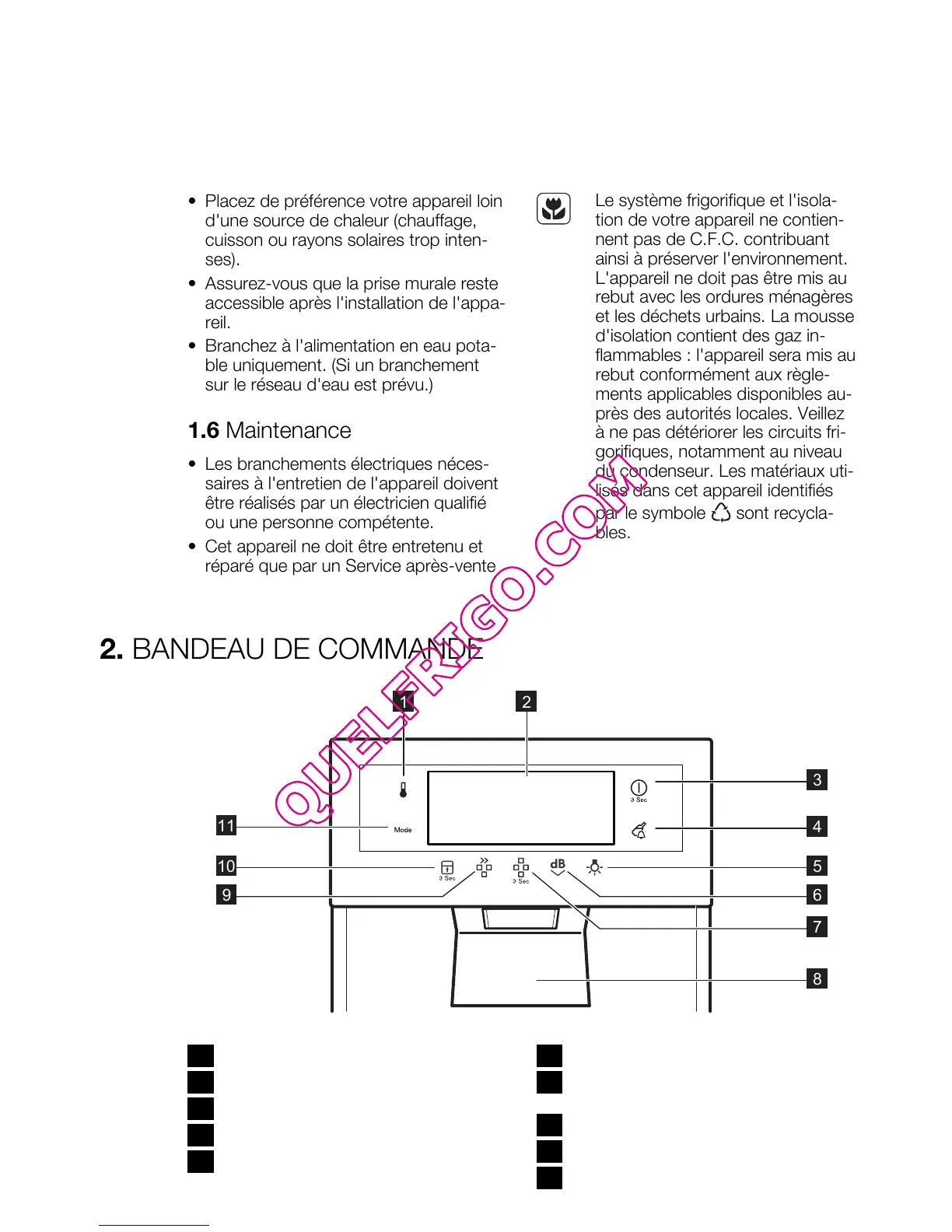 • Cet appareil ne doit être entretenu et