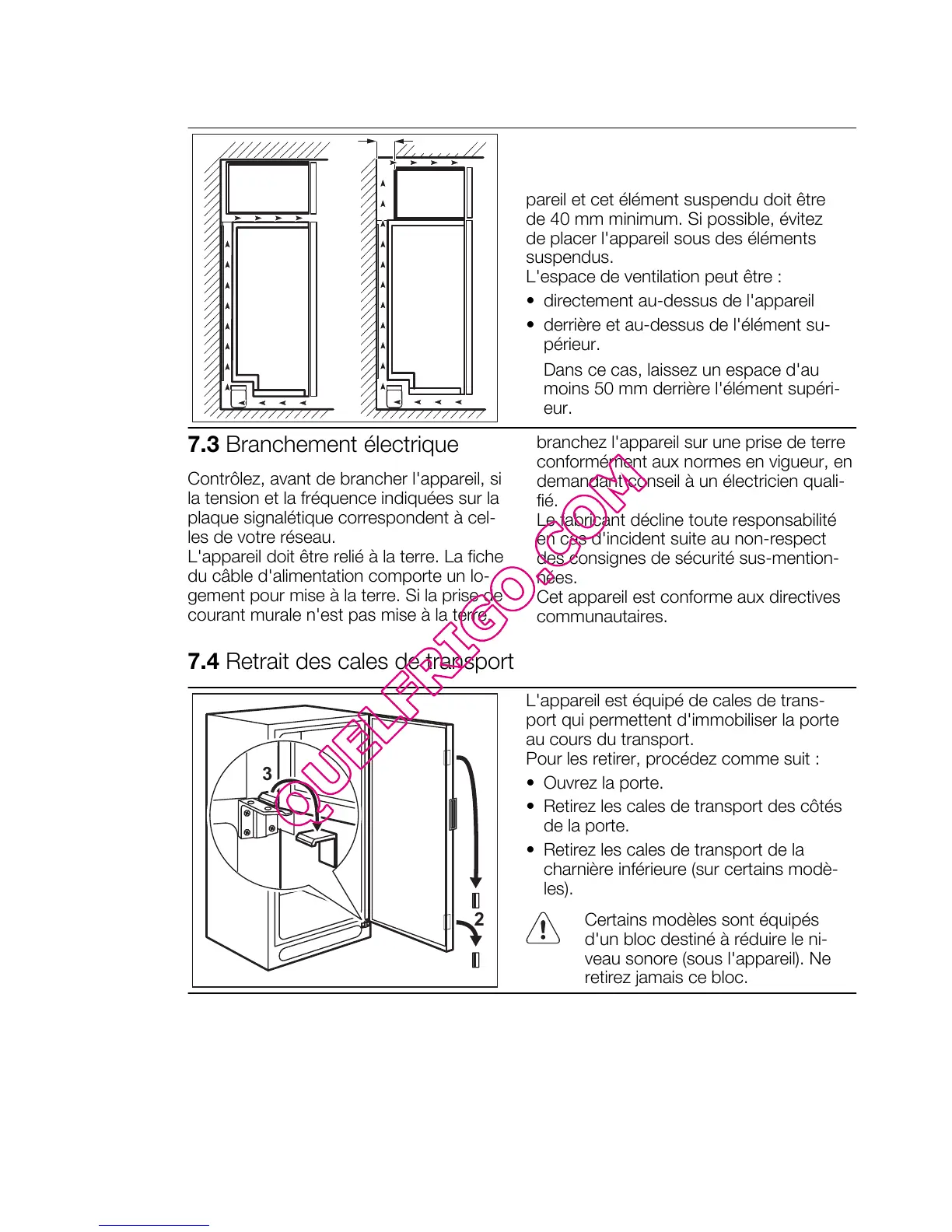 7.4 Retrait des cales de transport