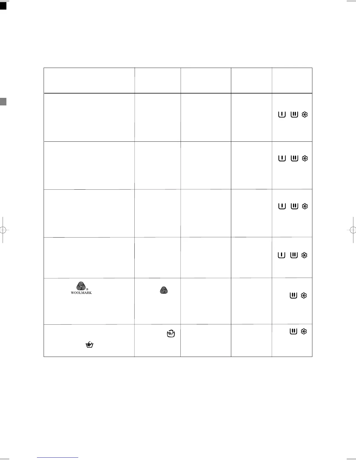 Electrolux EW 1280F - Washing Programmes Guide; Cottons Wash Programmes; Synthetics and Mixed Fabrics Wash Programmes; Delicates Wash Programme