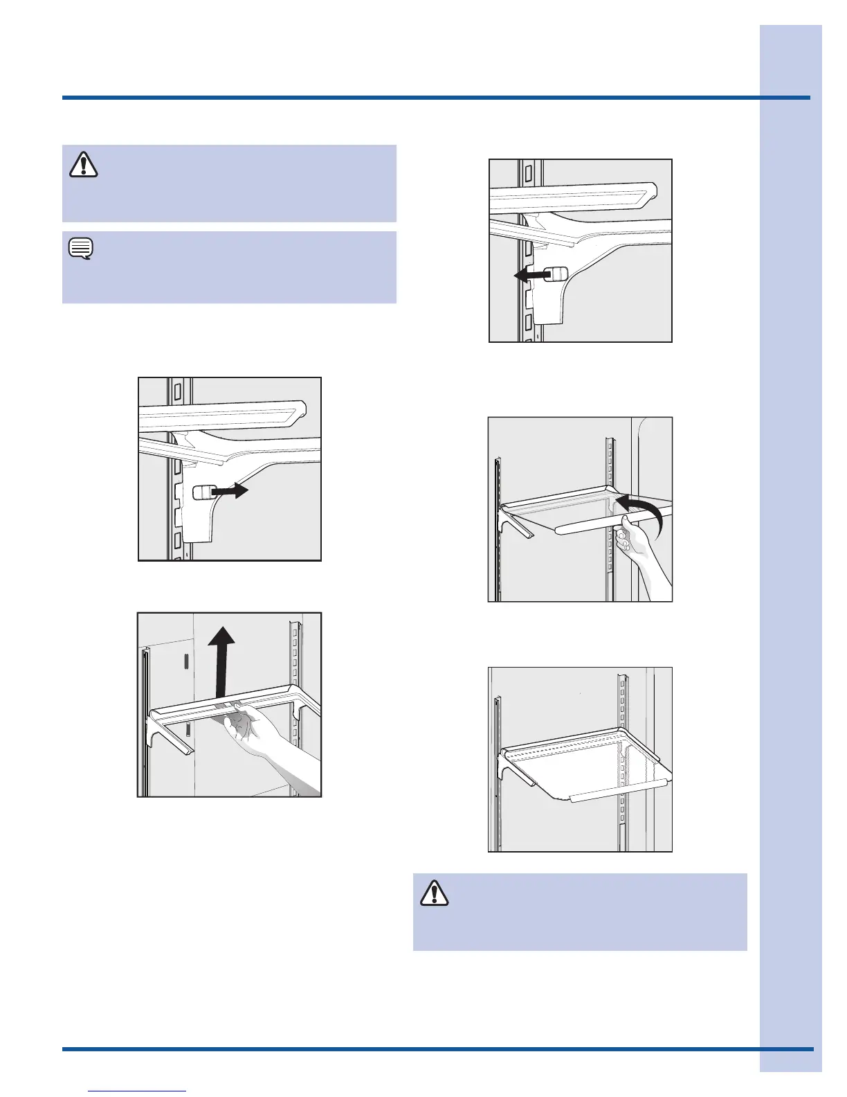 1 Remove shelf from its locked position by pulling