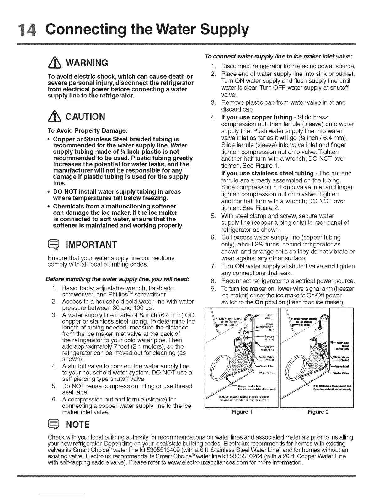 existing valve, Electrolux recommends its Smart Choice _water line kit 5305510264 (with a 20 ft. Copper Water Line