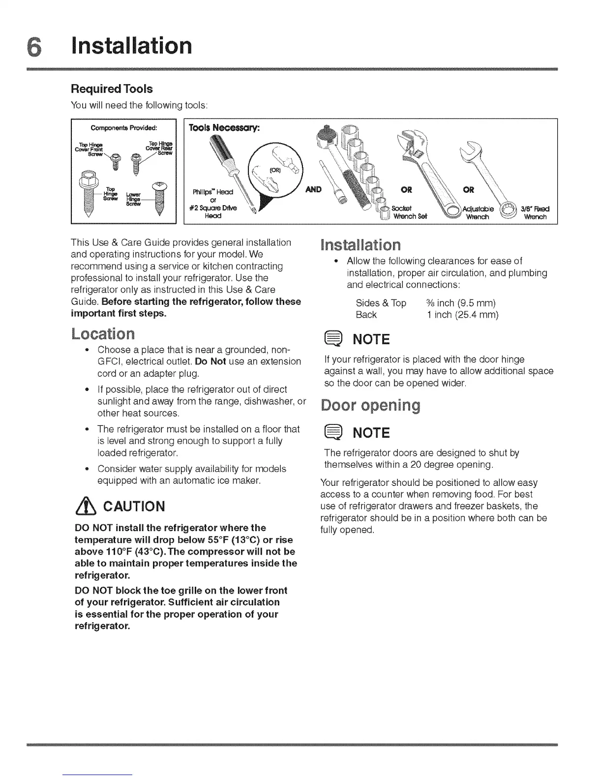 professional to install your refrigerator. Use the