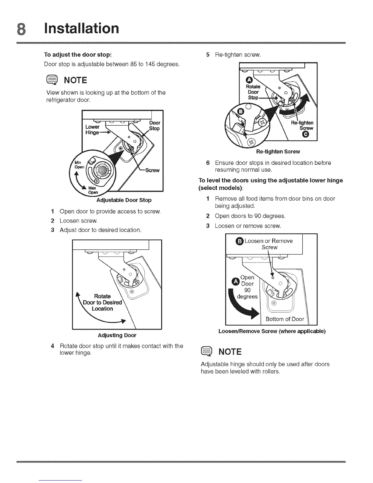 Adjust door to desired location,