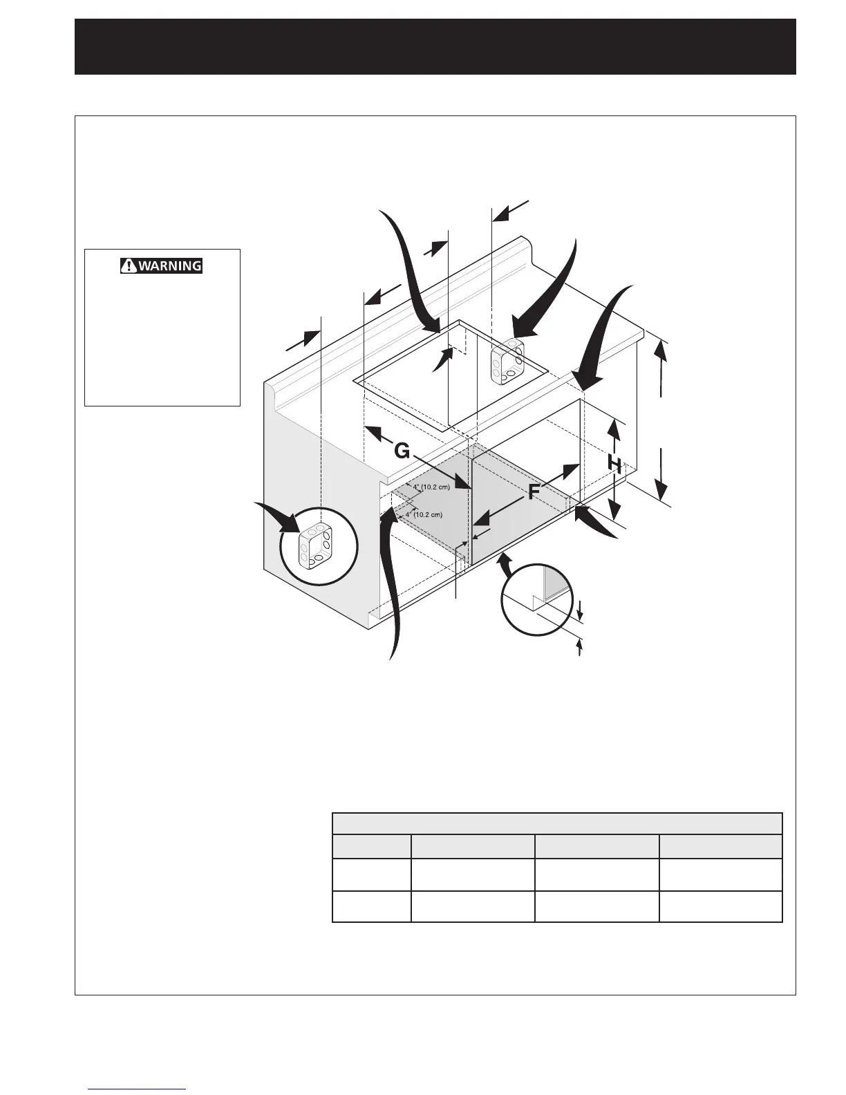Note 1: 4” x 4” (10.2 X 10.2 cm) opening to