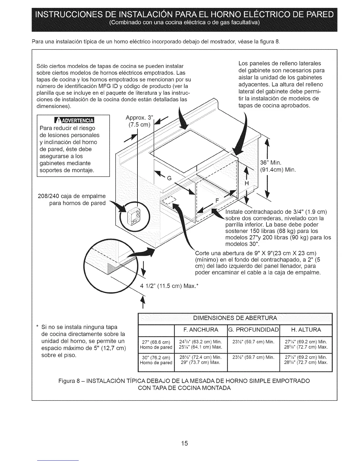 Para una instalaci6n tipica de un horno electrico incorporado debajo del mostrador, vease la figura 8.