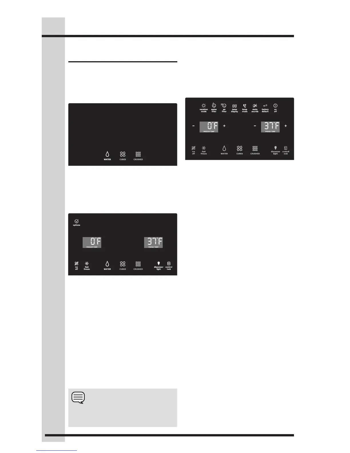 section for freezer ice maker controls.