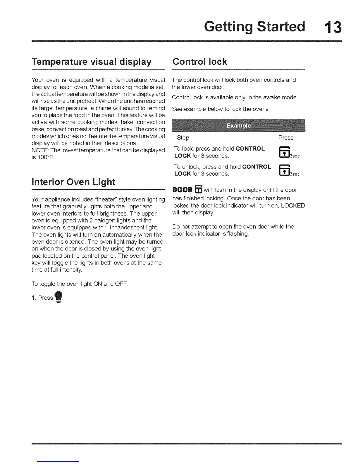 oven door is opened. The oven light may be turned