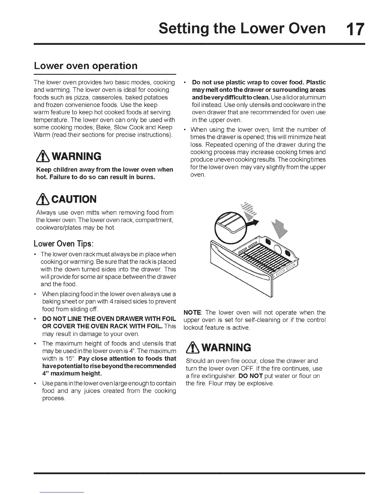 , DO NOT LINE THE OVEN DRAWER WITH FOIL