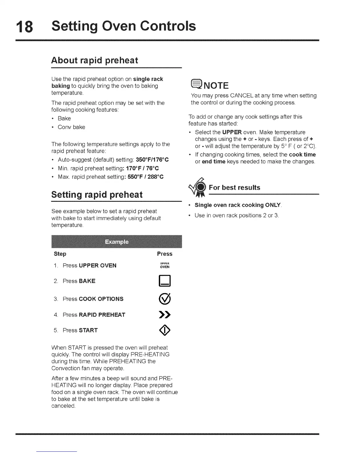 , Min. rapid preheat setting: 170°F / 76°C