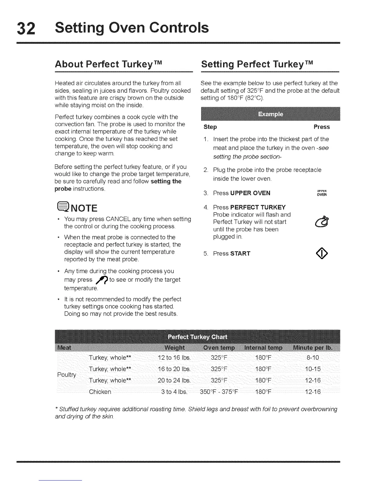 * Stuffed turkey requires additional roasting time. Shield legs and breast with foil to prevent overbrowning
