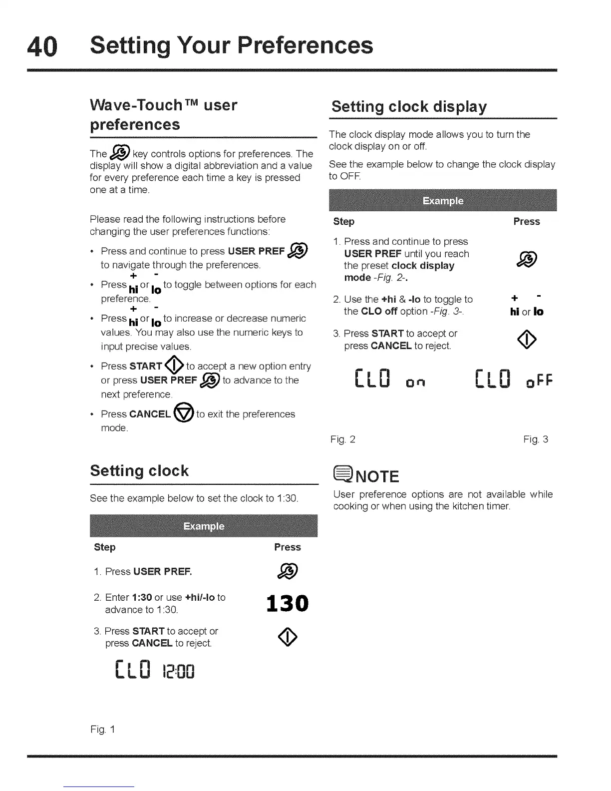 1. Press USER PREFo