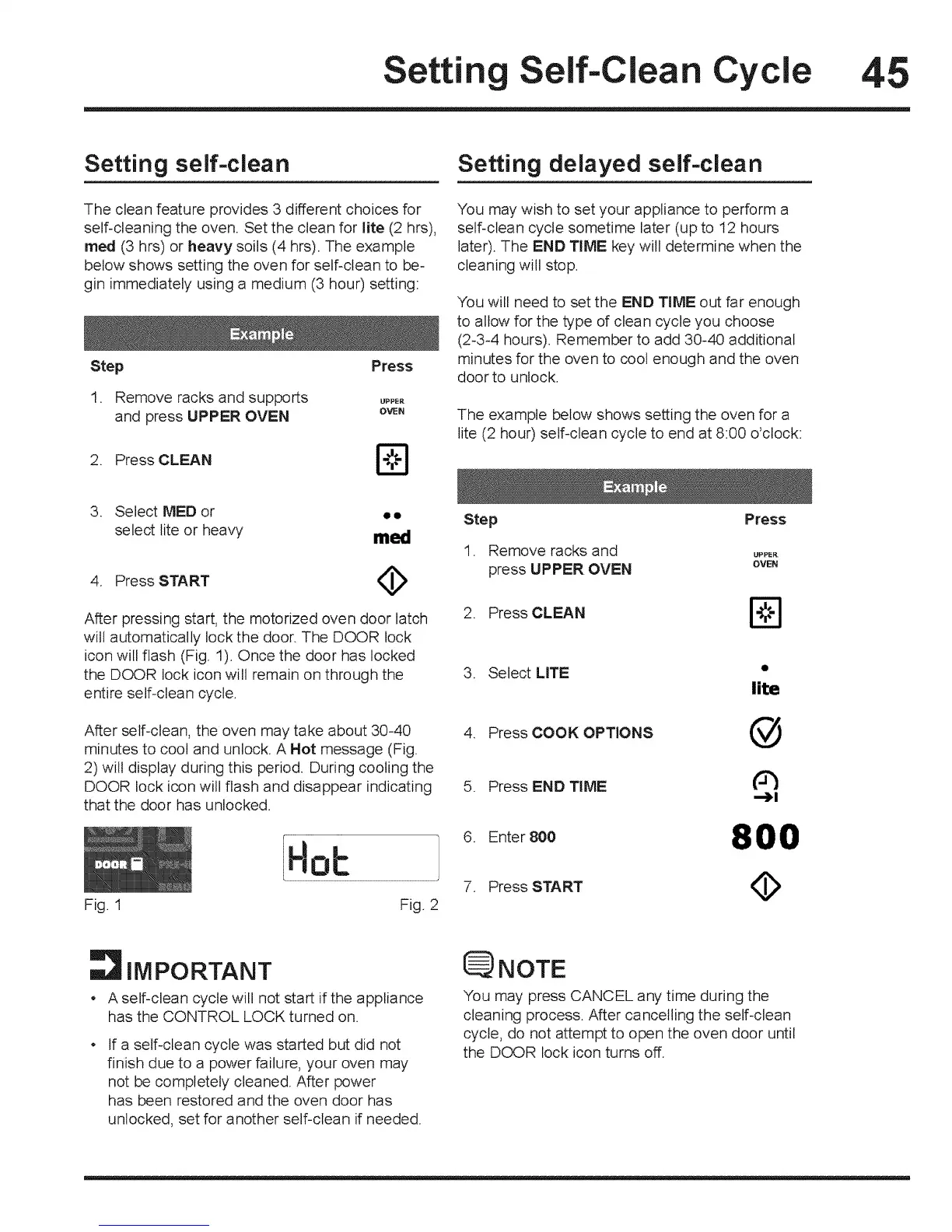 lite (2 hour) self-clean cycle to end at 8:00 o'clock: