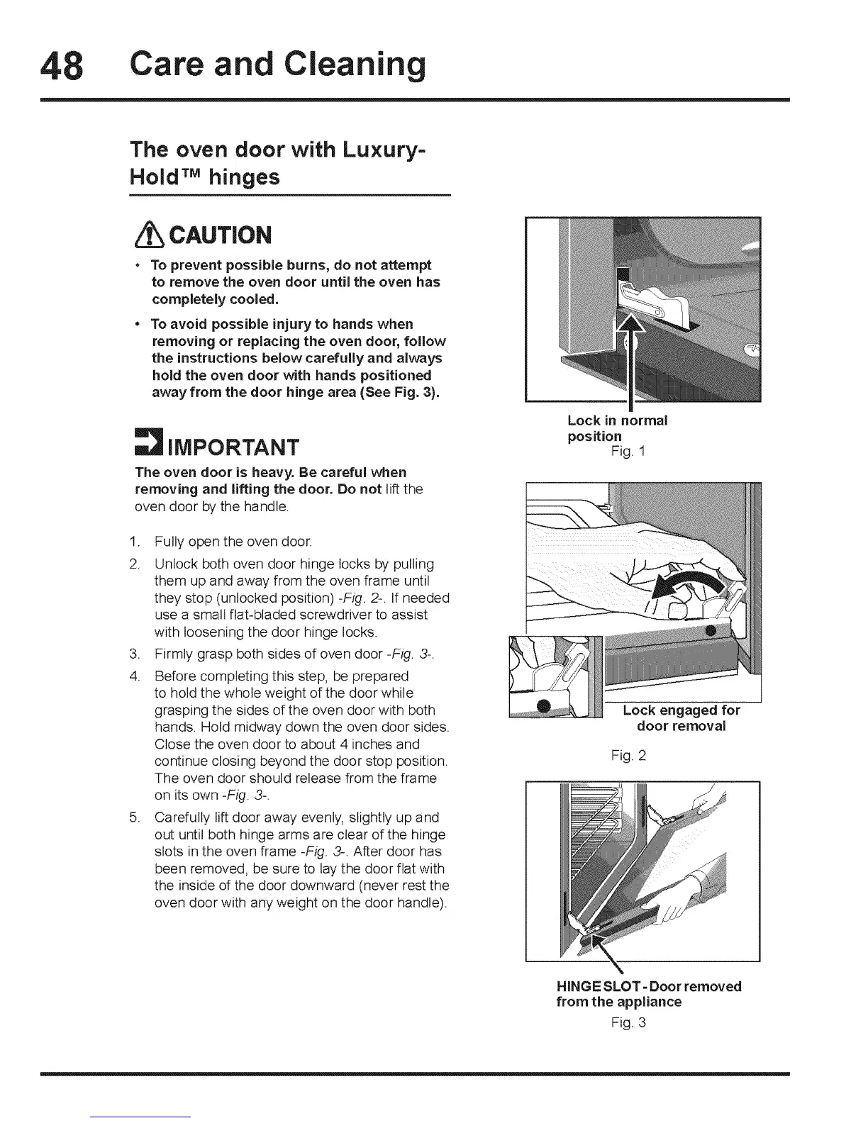 3. Firmly grasp both sides of oven door -Fig. 3-.