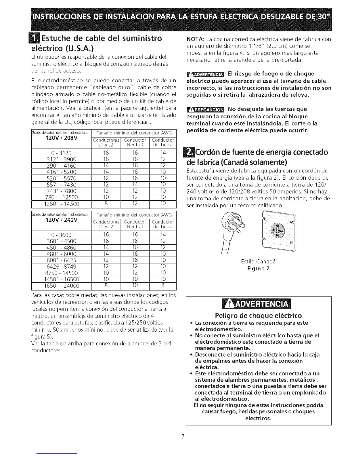Estuche de cable dei suministro NOTA: La cocina corrediza electrica viene de fabrica con