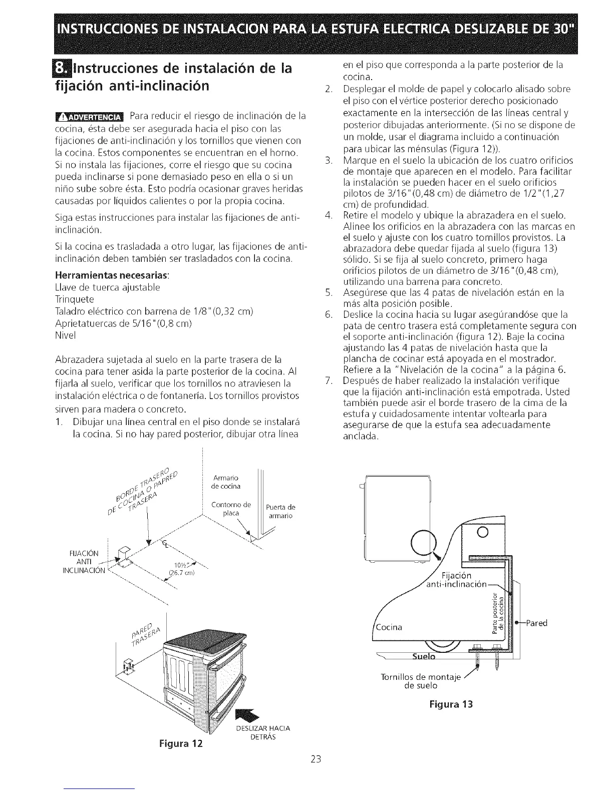 el soporte anti-inclinaci6n (figura 12). Baje la cocina
