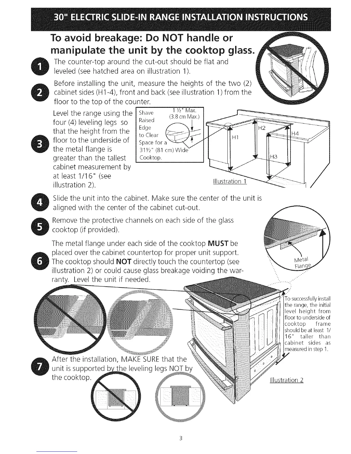 illustration 2) or could cause glass breakage voiding the war-