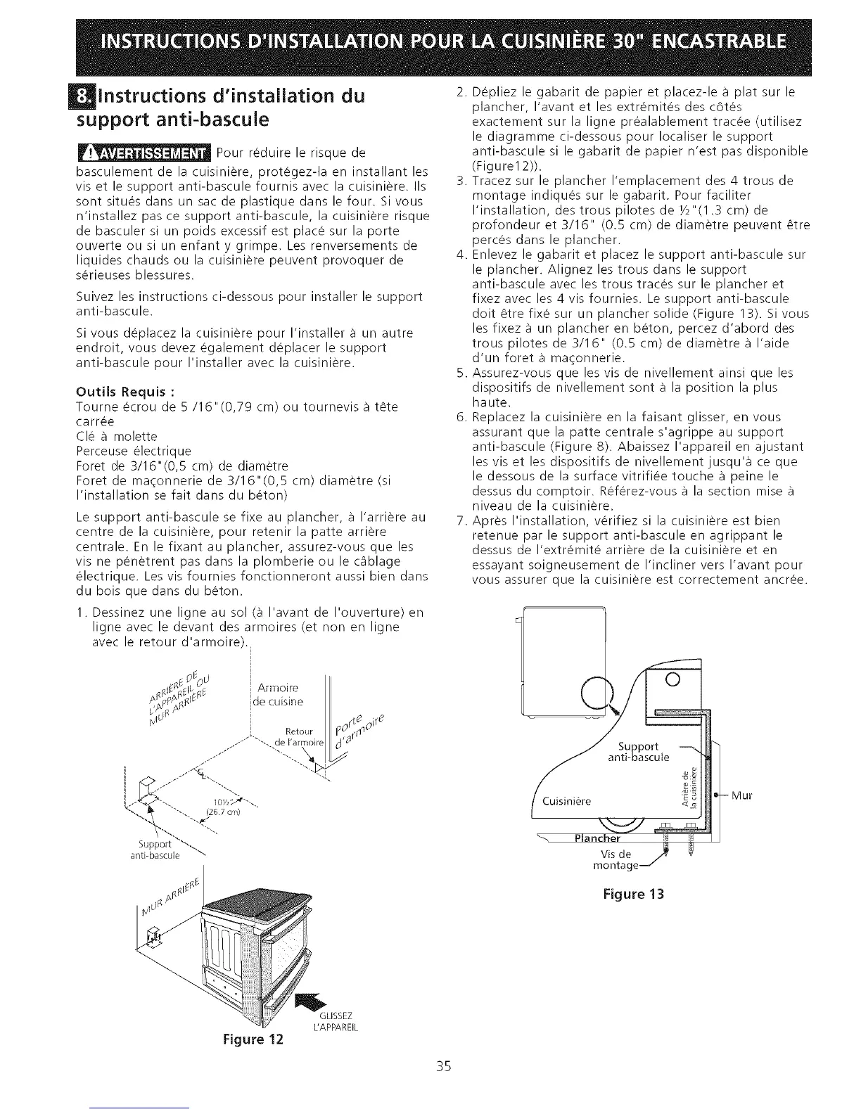 7. Alares I'installation, verifiez si la cuisiniere est bien